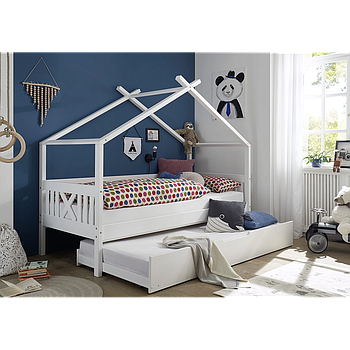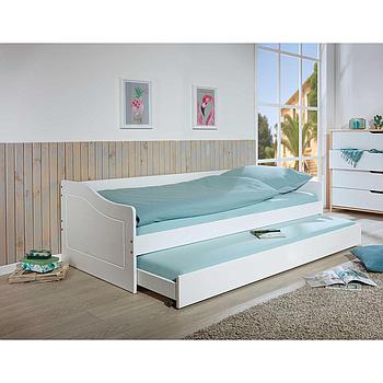 Ulli ágykeret, fiókos, ágybordával, vendégággyal, fehér lakkozott fenyő, 90x200 cm (CosyHome)
