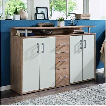 Treff komód, sonoma tölgy/fehér, 139x90x34 cm
