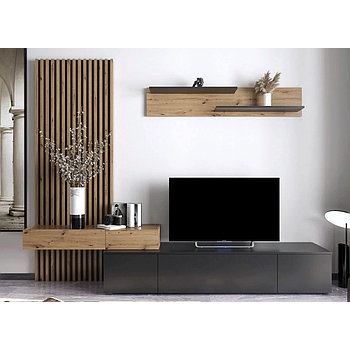 Colombus nappali összeállítás, antracit matt lakk / csomóstölgy, LED világítással