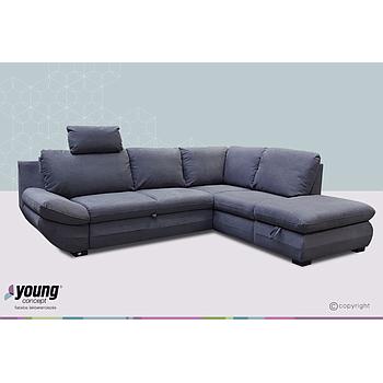 Ravenna sarokgarnitúra, állítható fejtámlákkal, vendégággyal, felnyíló tárolós elemmel, Szürke, 286x200 cm