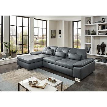 ICE bőr funkciós sarokgarnitúra, Vivre steel bőrrel 309x195 cm,
