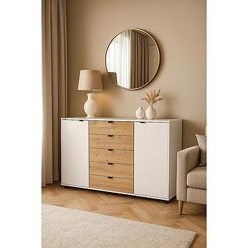 Nevada komód, 141 cm pezsgő üveg/Bianco tölgy, fogantyú szürke
