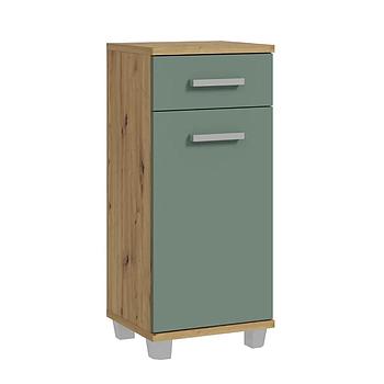 Feris fürdőszobai komód, 1ajtóval, 1fiókkal, Zsálya/Artisan tölgy, 40,2x90x34,8cm