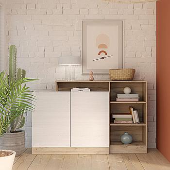 Bodil nappali szekrény és komód szettben, havas-bianco tölgy