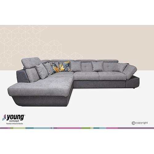 Adele sarokgarnitúra állítható ülésmélységgel, szürke, 310x265 cm"k"