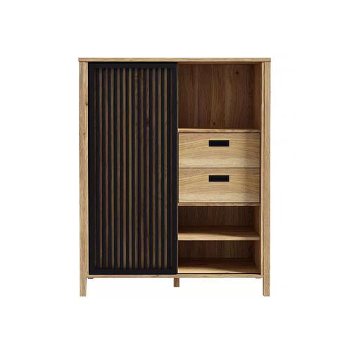 DURANGO család része. Az ajtók mögött elhelyezkedő 2 zárt polc ideális a ritkábban használt tárgyak, például szezonális textíliák, dokumentumok vagy háztartási eszközök rendszerezett tárolására. A felső fiók tökéletes helyet kínál apróbb holmiknak – kulcsoknak, iratoknak. A nyitott polc pedig kiváló lehetőséget nyújt dekorációk vagy gyakran használt tárgyak elhelyezésére.