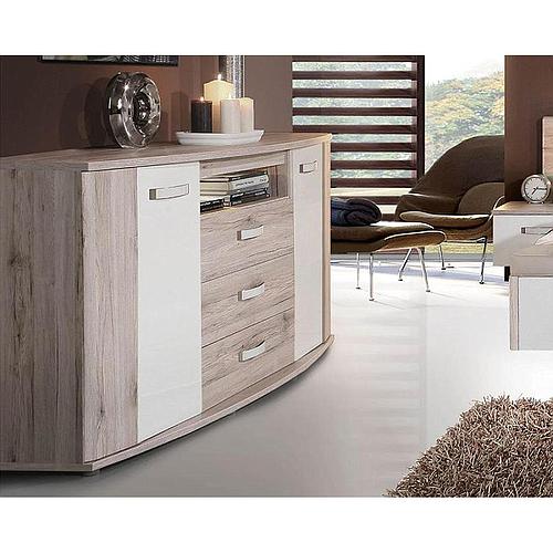 DURANGO család része! Ez a 3 ajtós, 2 fiókos tárolóbútor nemcsak látványos, hanem rendkívül praktikus is – ideális választás nappaliba, előszobába vagy akár hálószobába. A 2 tágas fiók a komód felső részén, tökéletes apróságok, dokumentumok, kiegészítők számára. A fiókok alatt található 2 ajtó mögött 2 polc biztosítja a rendezett tárolást. A különálló ajtó mögött 1 további polc kapott helyet.
