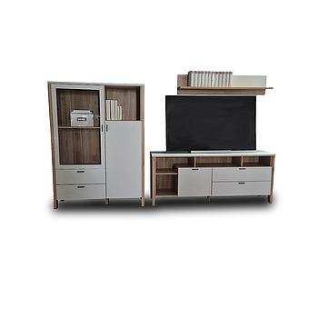 A Fatima termékcsalád állópolcos vitrinje egy praktikus és stílusos bútordarab, mely világosszürke műanyag felülettel és Mauvella tölgy utánzattal kombinálva készült. Az alumínium színű fém fogantyúk tovább fokozzák az esztétikát és a könnyű használatot.