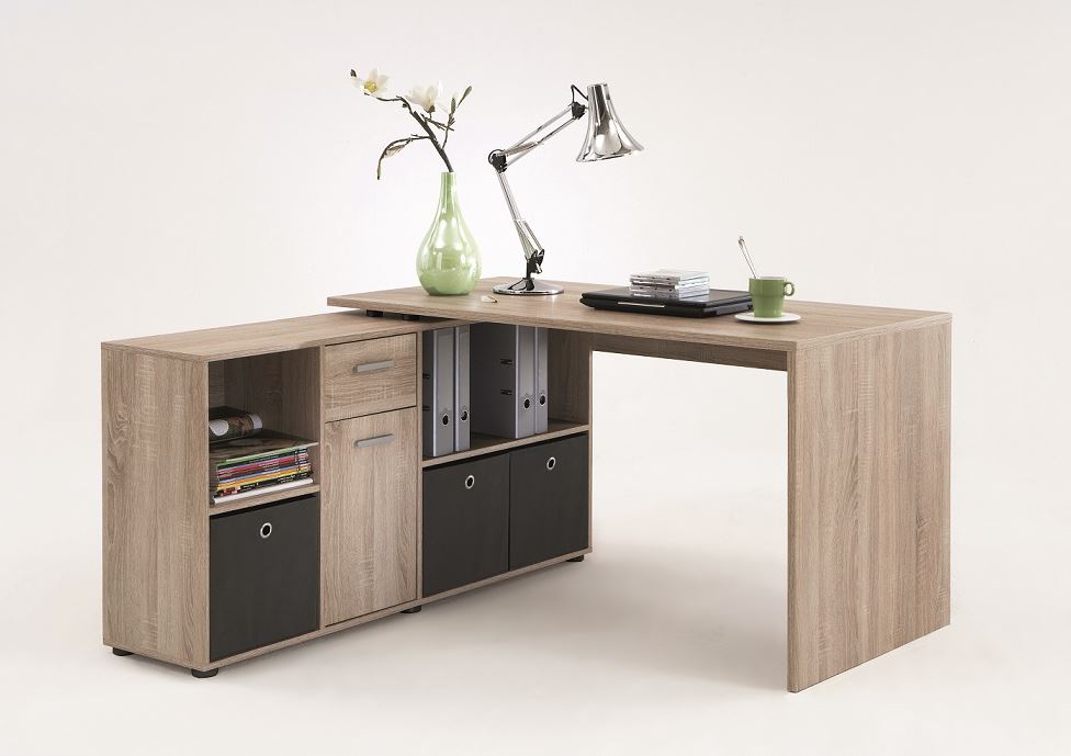 - Formás és praktikus íróasztal - sarok kombináció 4 nyitott rekesszel, 1 ajtóval és 1 fiókkal