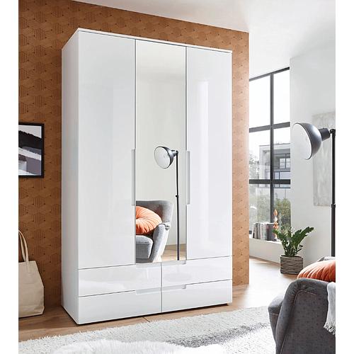 Henriette nyílóajtós szekrény, magasfényű fehér/tükör, 136x197x54cm