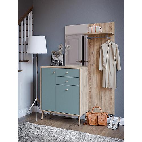 Keskeny mélységű 4 ajtós cipősszekrény divatos zöld színben.