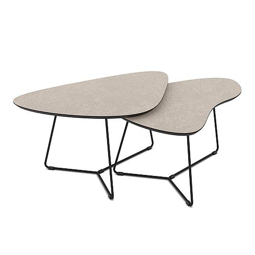 A kisebb asztal könnyedén betolható a nagyobb alá, így helytakarékos és praktikus megoldást kínál. Használható együtt látványos kompozícióként, vagy külön-külön elhelyezve a nappali több pontján.