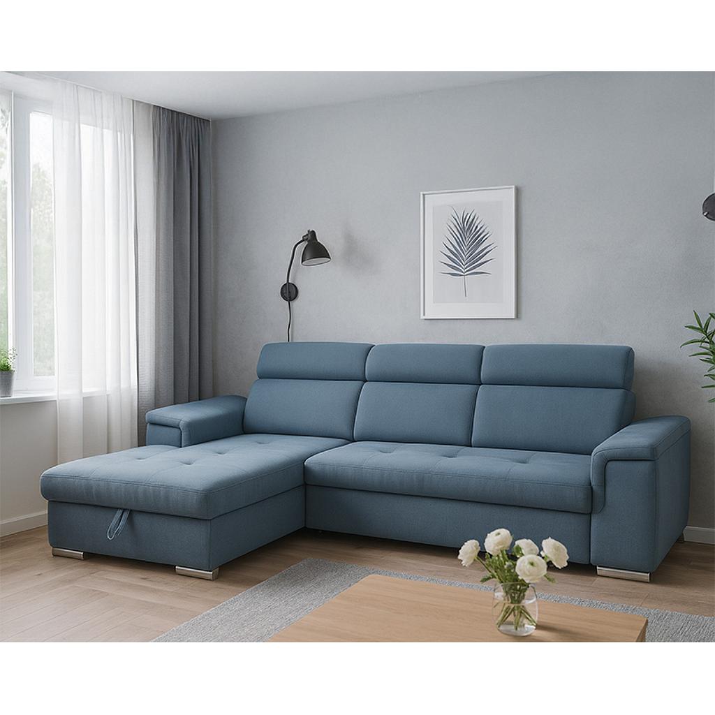 Lopez sarokgarnitúra, balos, kék, 275x185cm