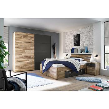 Ágykeret, artisan tölgy dekor kerettel, fejvég fehér betéttel, 2 ágyneműtartó fiókkal és fejvég beépített világítással elérhető.