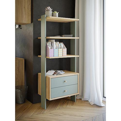 Az 5 nyitott polc tökéletes könyvek, dekorációk, növények vagy irattartók elhelyezésére, míg a 2 zárt fiók segít elrejteni a kevésbé szem előtt tartandó tárgyakat, így mindig rendezett marad a környezet.