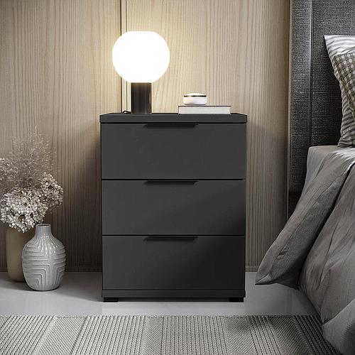 Sandro 3 fiókos éjjeliszekrény, kasmír, fekete fogantyú, 46x61x42 cm