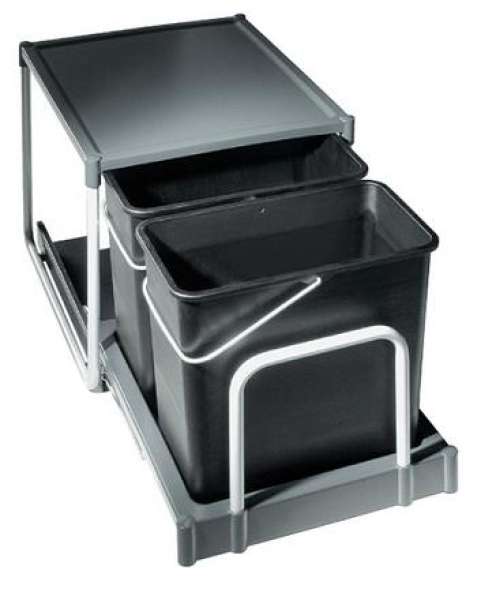 Szemetesvödör, sötétszürke, négyszögletes forma, beépíthető min.45cm szekrényszélességtől, űrtartalom: kb. 2x14 l