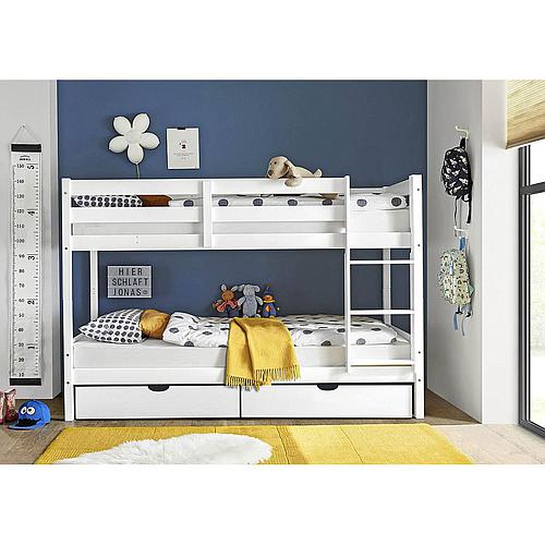 Ulli ágykeret, fiókos, ágybordával, vendégággyal, fehér lakkozott fenyő, 90x200 cm (CosyHome)