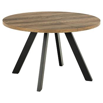 Roxan asztal, tölgy kerek fix tetőlap,fekete fa láb, átm:105cm