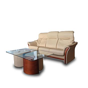 Fjords Alfa relaxgarnitúra, valódi bőr + dohányzóasztallal és bőr puffokkal