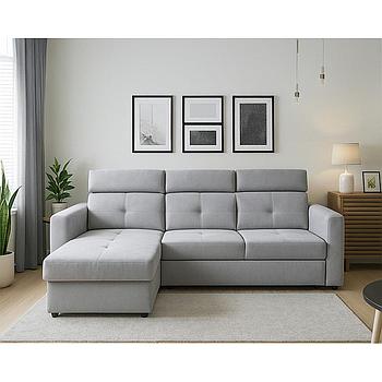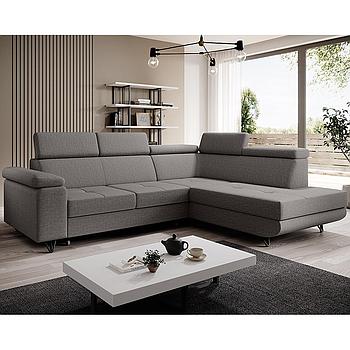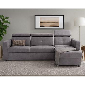 Ravenna sarokgarnitúra, állítható fejtámlákkal, vendégággyal, felnyíló tárolós elemmel, Szürke, 286x200 cm